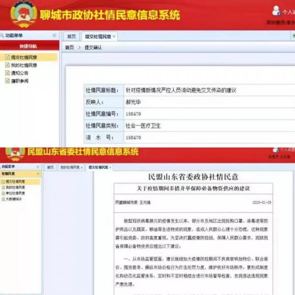 1月29日23:31民盟聊城市委盟務(wù)促進委員會王兆強提出《關(guān)于疫情期間多措并舉保障必備物資供應(yīng)的建議》,1月30日11:30民盟聊城大發(fā)展戰(zhàn)略服務(wù)委員會郝光華、田中元、李永軍等提出《針對疫情新情況嚴控人員流動避免交叉?zhèn)魅镜慕ㄗh》,民盟聊城市委呂明《關(guān)于加強居民小區(qū)防控新型冠狀病毒疫情措施的建議》等均符合當前緊急防控狀況,這些建議的提出真切地詮釋了聊城民盟的履職擔(dān)當。