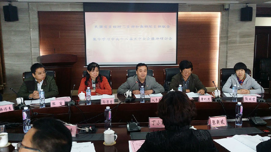 11月10日,由民盟省直臨時三支部、商職院支部聯(lián)合發(fā)起的集中學(xué)習(xí)中央十八屆五中全會精神研討會,在山東商業(yè)職業(yè)技術(shù)學(xué)院國家農(nóng)產(chǎn)品現(xiàn)代物流工程技術(shù)研究中心舉行。山東省人大常委、民盟省委專職副主委儀平策,山東省政協(xié)副秘書長、民盟省委專職副主委董利忠,中共山東商業(yè)職業(yè)技術(shù)學(xué)院黨委副書記丁小麗,民盟省委組織部部長孫巖巖,民盟省直新盟員臨時第三支部和商職院支部部分盟員、盟務(wù)指導(dǎo)員及支部聯(lián)絡(luò)員等參加會議。