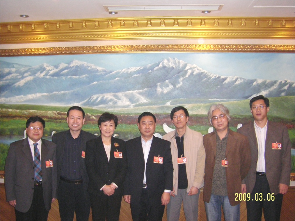 參加十一屆全國人大二次會議的山東盟員代表在會議期間合影留念(右起分別為:王新紅、周瑤琪、劉新國、溫孚江、湯建梅、達(dá)建文、江林昌 )