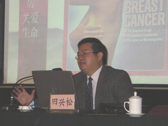 民盟山東省立醫(yī)院支部主委、省立醫(yī)院乳腺甲狀腺外科主任田興松教授為大家作了題為“關(guān)愛乳房·關(guān)愛生命----乳腺癌的早期診斷”專題講座。田教授詳盡地介紹了乳腺癌的特點(diǎn)和各種早期診斷方法,報(bào)告圖文并茂,生動(dòng)風(fēng)趣,得到了大家的一致好評(píng)。講座結(jié)束后,田教授還為部分女盟員進(jìn)行了義診。