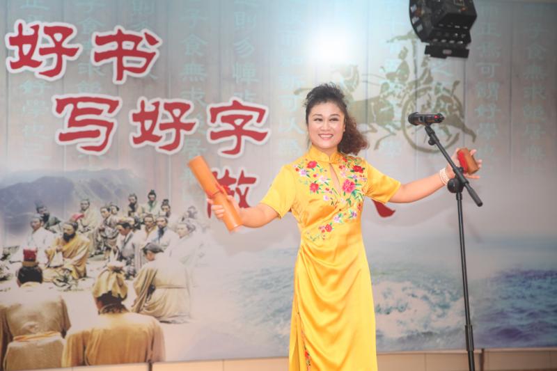 盟員、山東省文化館副研究館員陳軍現(xiàn)場表演了快板《祖國頌》