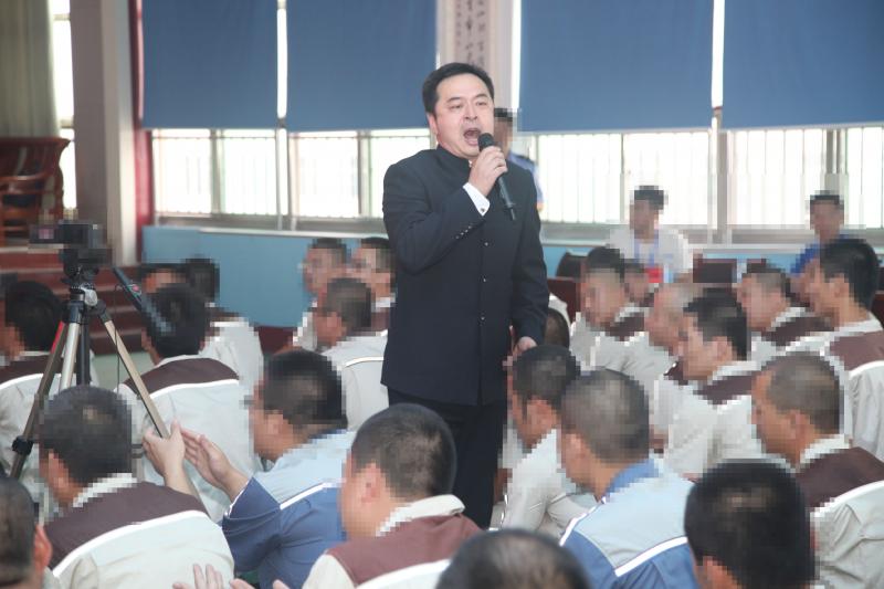 山東省濟(jì)東戒毒所副所長崔公正致辭后,社會幫戒文藝匯演伴隨著警察和戒毒人員共同表演的開場舞安塞腰鼓《慶新生》拉開序幕,省內(nèi)幾位知名演藝人士及院校青年學(xué)子傾情出演,用自己的作品為現(xiàn)場觀眾奉獻(xiàn)了一場精彩紛呈的藝術(shù)盛宴。其中,盟員、山東省文化館副研究館員陳軍現(xiàn)場表演了快板《祖國頌》,盟員、山東歌舞劇院青年演員高超帶來了蒙族舞蹈《草原》,盟員、山東歌舞劇院著名男高音歌唱家張延嶺現(xiàn)場演唱了《梨花又開放》《我的太陽》兩首經(jīng)典歌曲,張延領(lǐng)走進(jìn)戒毒人員中與他們熱情互動,將整場文藝演出推向了高潮。匯演在戒毒人員表演的感恩手語操《跪羊圖》中圓滿落幕。
