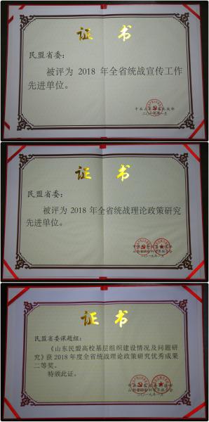民盟山東省委在調(diào)研宣傳方面榮獲三項表彰。民盟山東省委被評為2018年全省統(tǒng)戰(zhàn)宣傳工作先進(jìn)單位、2018年全省統(tǒng)戰(zhàn)理論政策研究先進(jìn)單位,民盟山東省委課題組調(diào)研文章《山東民盟高;鶎咏M織建設(shè)情況及問題研究》獲2018年度全省統(tǒng)戰(zhàn)理論政策研究優(yōu)秀成果二等獎。