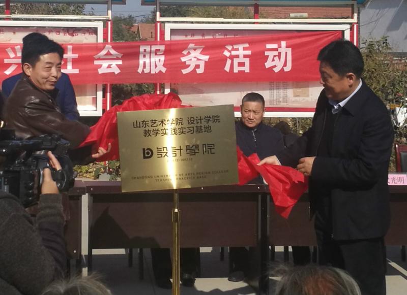 蘇培然、武光明為“山東藝術學院設計學院創(chuàng)新創(chuàng)業(yè)教學實踐基地”揭牌;