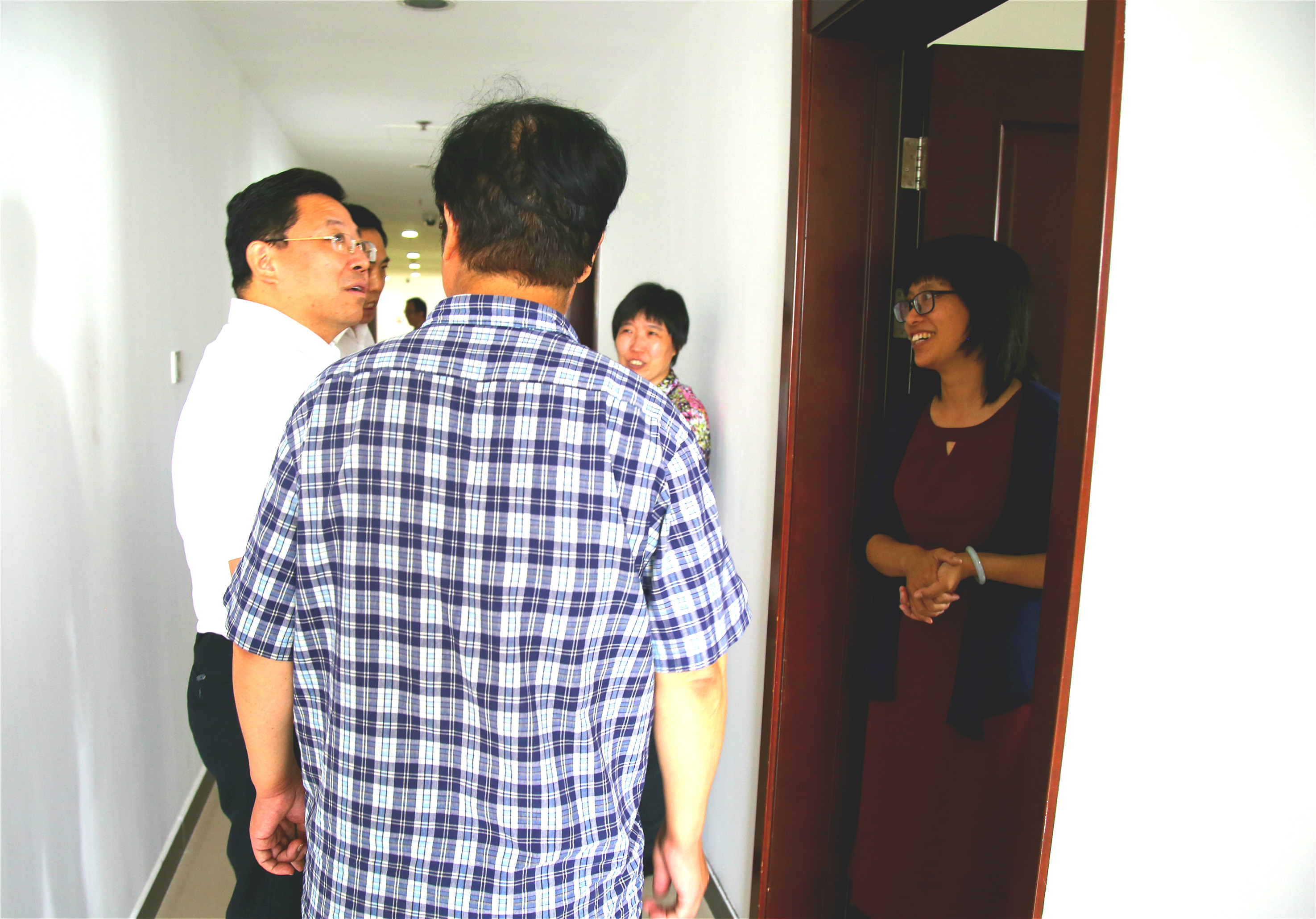走訪調(diào)研中,李琥看望慰問(wèn)了機(jī)關(guān)干部,與他們親切握手,并不時(shí)詢問(wèn)機(jī)關(guān)干部相關(guān)工作情況。他在山東民盟賢達(dá)和機(jī)關(guān)辦公文化墻前駐足閱讀,董利忠介紹了民盟山東省委的歷史沿革、代表性人士情況、開(kāi)展的主要工作等。