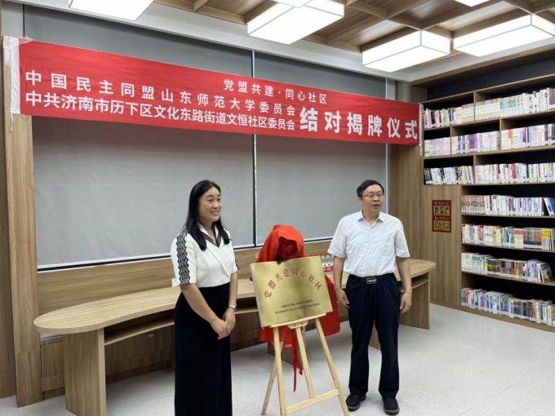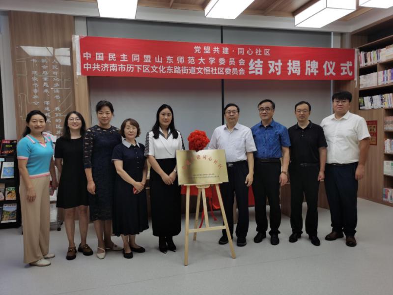 為進(jìn)一步深入貫徹落實民盟中央十二屆五中全會把“社區(qū)服務(wù)”作為社會服務(wù)重點探索領(lǐng)域的要求,7月27日上午,民盟山東師范大學(xué)委員會與歷下區(qū)文東街道文恒社區(qū)聯(lián)合舉辦“黨盟共建·同心社區(qū)”結(jié)對揭牌儀式。