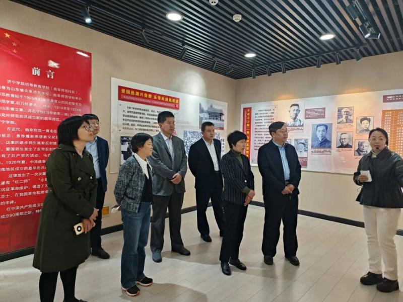 在曲阜市,調(diào)研組一行調(diào)研了濟寧學院“中共山東省立第二師范學校支部舊址”。大家相繼參觀了萬里圖書館、考舍、校史館、紅二師紀念館等,回顧了紅二師支部成立、發(fā)展、壯大的艱難過程,充分領(lǐng)會了“紅二師精神”,了解了民盟中央第五屆主席楚圖南在曲阜二師的革命經(jīng)歷。