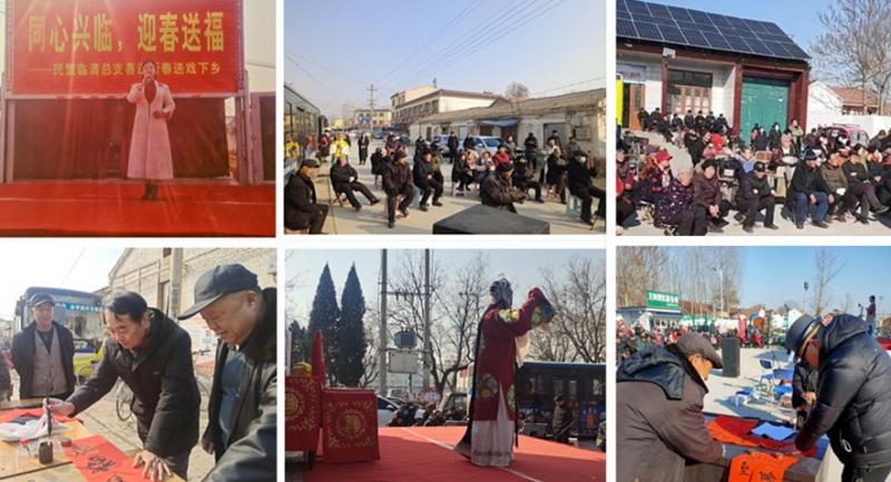 新春將至,為進(jìn)一步豐富群眾的精神文化生活,弘揚(yáng)傳統(tǒng)文化,濃厚節(jié)日氛圍,自進(jìn)入臘月以來,民盟臨清總支持續(xù)組織開展“同心興臨,迎春送福”送戲下鄉(xiāng)惠民演出活動(dòng),盟員及志愿者走進(jìn)農(nóng)村精彩開演,并給村民現(xiàn)場(chǎng)書寫、贈(zèng)送春聯(lián),為群眾奉上了精美的“文化大餐”,讓惠民活動(dòng)溫暖寒冷的冬天,迎接新春的到來。
