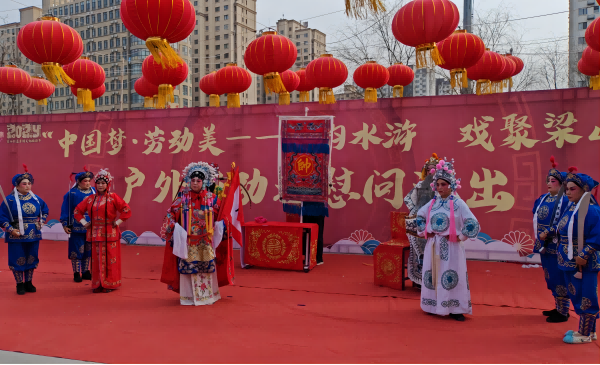 為進(jìn)一步學(xué)習(xí)貫徹習(xí)近平文化思想,豐富全縣職工群眾精神文化生活,3月3日,民盟濟(jì)寧市梁山總支聯(lián)合縣總工會(huì)、縣文藝志愿協(xié)會(huì)走進(jìn)幸福街社區(qū)開展“中國夢(mèng)·勞動(dòng)美——曲韻水滸 戲聚梁山”戶外勞動(dòng)者慰問演出活動(dòng)。