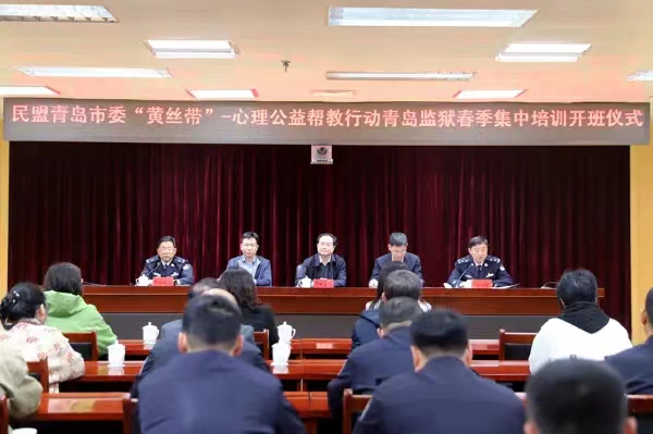 4月17日,民盟青島市委會“黃絲帶心理公益幫教”——春季集中培訓(xùn)開班儀式在青島監(jiān)獄舉行,民盟青島市委會專職副主委陳立波、市司法局副局長王新鋒、青島監(jiān)獄監(jiān)獄長高振明在開班儀式上致辭。