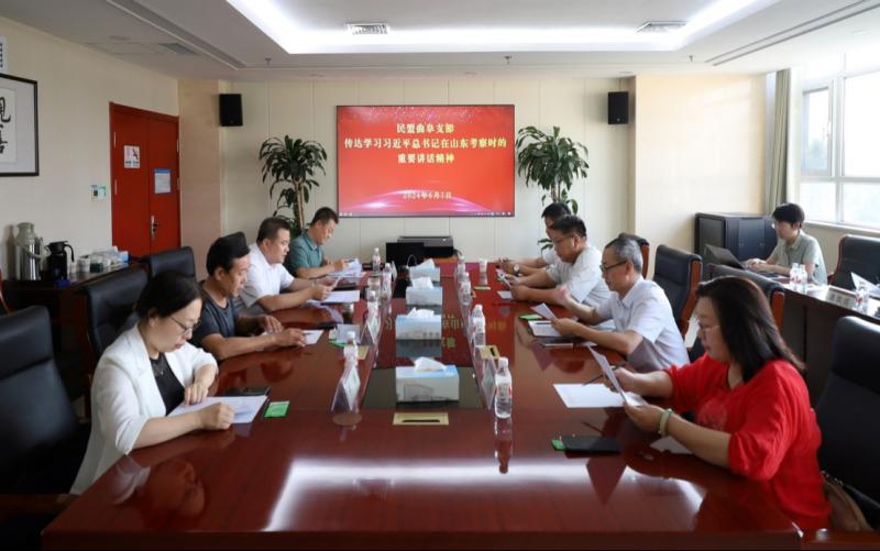 支部副主委馬長濤、何麗分別傳達(dá)了習(xí)近平總書記在山東考察時的重要講話精神,以及在企業(yè)和專家座談會上的重要講話精神。