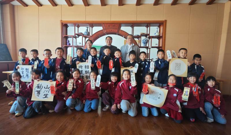 4月23日,在第30個(gè)世界讀書日來臨之際,民盟煙臺(tái)福山區(qū)第二支部充分發(fā)揮民盟福山“書畫潤心”品牌建設(shè)作用,組織盟員書畫家來到福山區(qū)門樓小學(xué),與孩子們一起開展“書名言、繪美簽”讀書日主題活動(dòng)。