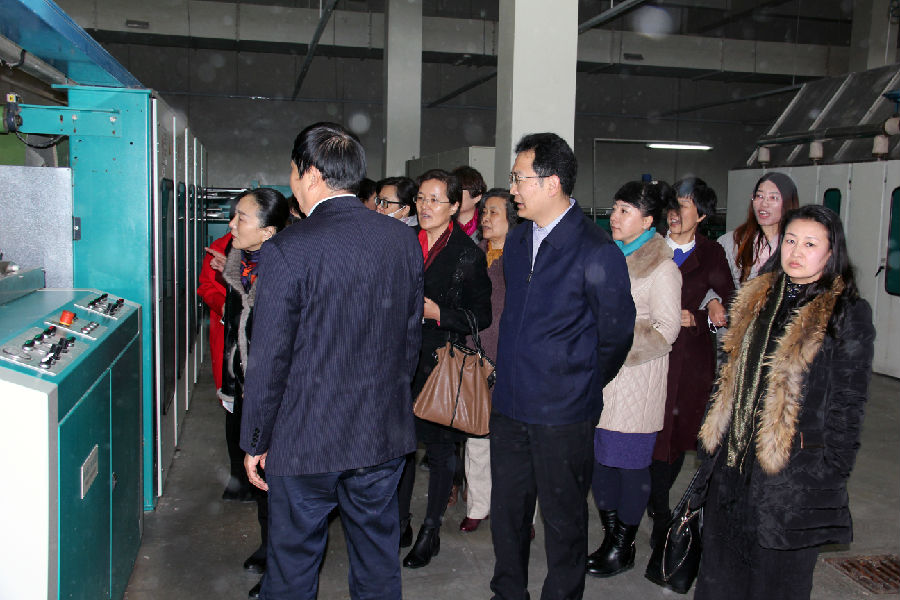 3月8日下午,民盟濱州市委組織部分女盟員到濱州亞光家紡有限公司參觀考察,慶祝“三八”國(guó)際勞動(dòng)?jì)D女節(jié)。民盟濱州市委主委、濱州市人民政府副市長(zhǎng)萬(wàn)永格參加活動(dòng)。