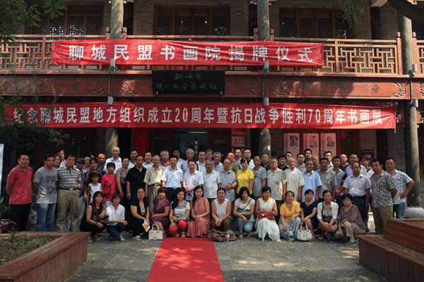 2015年8月22日,由民盟聊城市委、民盟東昌府區(qū)委聯(lián)合主辦的紀(jì)念聊城民盟地方組織成立20周年暨抗日戰(zhàn)爭(zhēng)勝利70周年書(shū)畫(huà)展在聊城民盟書(shū)畫(huà)院舉行開(kāi)幕儀式。民盟聊城市主委郝光華、副主委兼民盟東昌府區(qū)委主委閆淑青、秘書(shū)長(zhǎng)李永軍,民盟聊城市委原副主委張競(jìng)放、許孟祥,以及郭西軍等10多名中國(guó)書(shū)法界協(xié)會(huì)會(huì)員、美術(shù)家協(xié)會(huì)會(huì)員朋友出席了開(kāi)幕儀式并參觀了畫(huà)展。