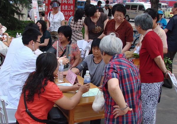 盡管天氣炎熱,參加社區(qū)服務(wù)的盟員還是一早就趕到了活動(dòng)場(chǎng)所。三醫(yī)的陳堅(jiān)主任、張長(zhǎng)青主任,八醫(yī)的王惠榮主任為居民量血壓、進(jìn)行內(nèi)科聽(tīng)診和健康咨詢(xún),并耐心的對(duì)病人進(jìn)行針對(duì)性醫(yī)療指導(dǎo)。短短兩小時(shí)時(shí)間,三位專(zhuān)家為居民量血壓近200人次,提供醫(yī)療便方三十余張,發(fā)放宣傳材料200余份。提供教育服務(wù)的王平、隋雪麗、許帥、盧新華、劉振軍、尤紅巖、張雁、朱兆紅等教育工作者熱心為居民解答各類(lèi)教育問(wèn)題,還向居民發(fā)放盟員們利用休息時(shí)間自編的學(xué)前教育、小學(xué)教育、中學(xué)教育宣傳材料近三百份。東亞銀行行長(zhǎng)、盟員孫善功也帶來(lái)了他的金融理財(cái)團(tuán)隊(duì),為居民提供理財(cái)、貸款等方面的服務(wù)。工委委員趙森昆則忙前忙后,為這次活動(dòng)提供力所能及的幫助。