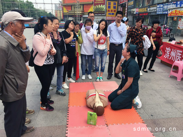 此次活動是民盟濱州市濱醫(yī)附院支部組織的“民盟醫(yī)療專家惠民行”系列活動之一。在活動現(xiàn)場,民盟濱州市濱醫(yī)附院支部的盟員劉莉、孫斌、劉春遠(yuǎn)等同志不僅從理論上詳細(xì)講解了急救方法、急救要領(lǐng)、注意事項(xiàng)等,還專門帶來了模擬假人為大家演示急救規(guī)范動作,并手把手進(jìn)行傳授。