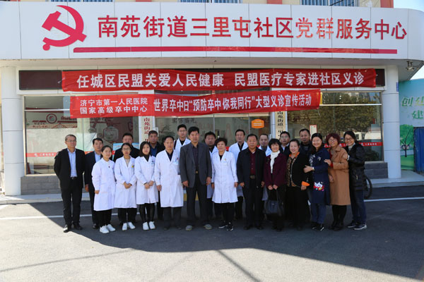 濟寧市第一人民醫(yī)院盟員中的醫(yī)療專家一行20余人來到任城區(qū)南苑街道三里屯社區(qū),開始了活動。民盟濟寧市委副主委兼秘書長劉曉穎同志、任城區(qū)政協(xié)副主席王為敬同志、任城區(qū)委統(tǒng)戰(zhàn)部副部長劉慶運同志以及任城區(qū)的部分盟員參加了活動。