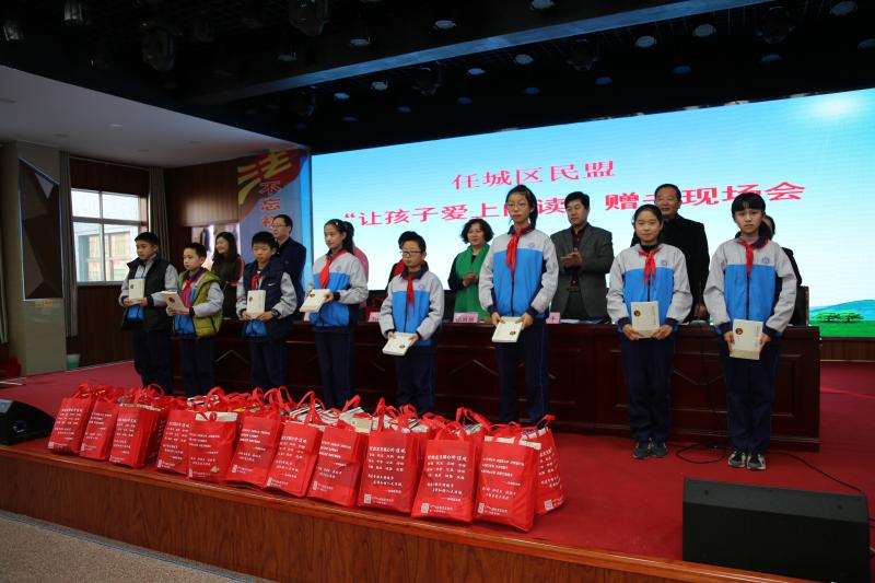 2017年12月21日下午,民盟濟(jì)寧市任城區(qū)二支部“讓孩子愛(ài)上閱讀”贈(zèng)書現(xiàn)場(chǎng)會(huì)在濟(jì)寧市運(yùn)河實(shí)驗(yàn)中學(xué)隆重舉行。民盟濟(jì)寧市委副主委兼秘書長(zhǎng)劉小穎,濟(jì)寧學(xué)院教授張麗麗,中共任城區(qū)區(qū)委統(tǒng)戰(zhàn)部副部長(zhǎng)王秀娟,民盟濟(jì)寧市委委員、任城區(qū)二支部委員會(huì)主委王平,任城區(qū)教體局副局長(zhǎng)李敬東出席會(huì)議。民盟濟(jì)寧任城區(qū)二支部全體盟員、學(xué)校教師代表、初一年級(jí)學(xué)生及受邀的學(xué)生家長(zhǎng)500多人共同參加了現(xiàn)場(chǎng)會(huì)。
