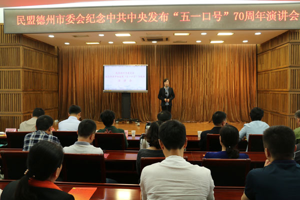 為回顧“五一口號(hào)”發(fā)布和我國新型政黨制度形成、發(fā)展的歷史進(jìn)程,深刻銘記合作初心,弘揚(yáng)民盟與中國共產(chǎn)黨親密合作的優(yōu)良傳統(tǒng),民盟德州市委于5月9日舉行了紀(jì)念中共中央發(fā)布“五一口號(hào)”70周年演講會(huì)。市政協(xié)副主席、民盟市委主委康志民,市委統(tǒng)戰(zhàn)部副部長李雯靜,市教育局副局長王學(xué)東,德城區(qū)委常委、統(tǒng)戰(zhàn)部部長孟宇出席活動(dòng)。