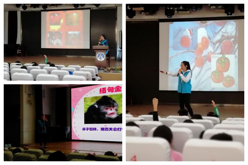 10月23日(農(nóng)歷九月十五)是秋天的最后一個(gè)節(jié)氣——霜降,這天中午,志愿者王雅軍、朱倩和尹雪嬌來到山師附小三樓報(bào)告廳,為三年級三個(gè)班的同學(xué)帶來了有關(guān)霜降和熱帶水果的科普講座。
