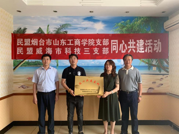 下午,民盟山東工商學(xué)院支部與民盟威海市科技三支部舉行了“同心共建基地”揭牌活動(dòng)。民盟山東工商學(xué)院支部主委華臻與民盟威海市委副主委譚志剛、秘書長(zhǎng)姜茂林、科技三支部主委畢偉忠、經(jīng)濟(jì)專委會(huì)副主委李世剛,共同為基地揭牌;爻闪⒑,雙方將利用各自優(yōu)勢(shì),在社會(huì)服務(wù)開展、經(jīng)濟(jì)科技調(diào)研等方面開展合作。