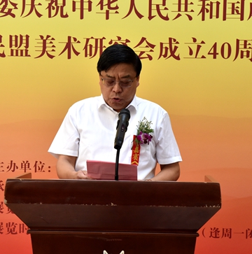 楊乃瑞代表青島市書法家協(xié)會致辭。他向青島市民盟美術研究會建會40周年表示祝賀,并對青島民盟美術研究會40年來發(fā)展取得的成績表示欽佩。他說,此次畫展展示了全市盟員砥礪前行,奮發(fā)圖強的精神風貌,必將激發(fā)全市盟員和藝術家們?yōu)閷崿F(xiàn)中華民族偉大復興夢的昂揚斗志。