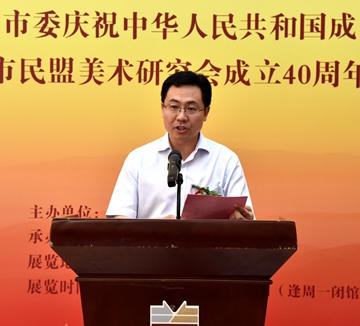 董顯仁代表青島市民盟美術研究會致辭。他指出,青島市民盟美術研究會成立40年來,在民盟青島市委的領導下,本著“弘揚祖國優(yōu)秀文化,建樹民族精神文明”宗旨,廣泛團結盟內外書畫界藝術家,努力開展多種形式的學術交流和藝術活動,為繁榮書畫藝術研究貢獻著自己的力量。他表示,“筆墨當隨時代”,時代不斷前進,研究會和藝術家們要以習近平新時代文化建設思想為指導,堅持以人民為中心的創(chuàng)作導向,不斷提升精神境界,努力創(chuàng)作出更多具有地方特色和時代氣息的優(yōu)秀作品,為新時代社會主義文化繁榮興盛作出新成績,譜寫新篇章!