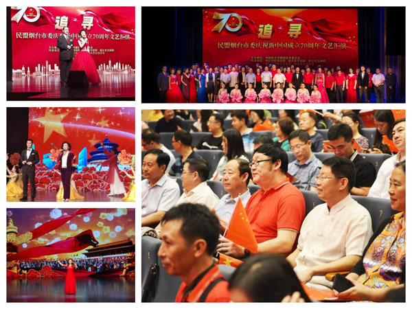 為熱情謳歌新中國成立70年來取得的偉大成就,推進“不忘合作初心、繼續(xù)攜手前進”主題教育活動開展,集中展現(xiàn)民盟煙臺市委形象及新時代廣大盟員的飽滿熱情和嶄新風(fēng)貌,2019年9月28日下午,“追尋——民盟煙臺市委慶祝新中國成立70周年文藝匯演”在煙臺京劇院隆重舉行。民盟山東省委副主委田興松,煙臺市人大副主任潘士友,中共煙臺市委統(tǒng)戰(zhàn)部副部長、市社會主義學(xué)院副院長于忠杰,民盟煙臺市委主委梁輝等領(lǐng)導(dǎo)同志及相關(guān)部門負責(zé)人出席了活動。大家在精彩的節(jié)目中共同唱響禮贊新中國、奮進新時代的昂揚旋律,表達了為實現(xiàn)中華民族偉大復(fù)興的中國夢不懈奮斗的堅定信心和決心。盟員和各界友人等200多名觀眾現(xiàn)場觀看了演出。