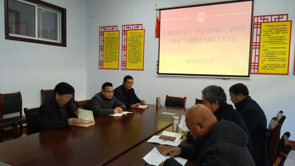 為落實(shí)好《民盟棗莊市委關(guān)于深入推進(jìn)“不忘合作初心,繼續(xù)攜手前進(jìn)”主題教育活動(dòng)方案》和中共薛城區(qū)委統(tǒng)戰(zhàn)部主題教育座談會(huì)精神,深入推進(jìn)主題教育活動(dòng)開展,2019年12月31日,民盟棗莊薛城區(qū)總支召開“不忘合作初心繼續(xù)攜手前進(jìn)”主題教育專題民主生活會(huì)。總支班子成員參加會(huì)議,會(huì)議由總支主委孫允寶主持。