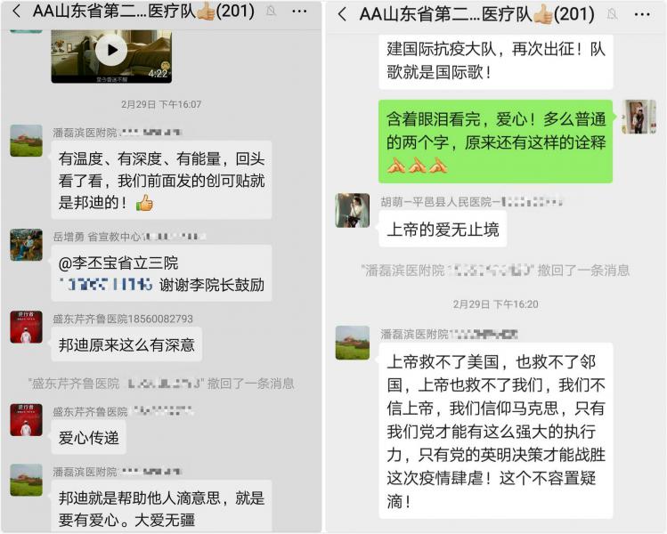 當(dāng)我關(guān)閉視頻,回到微信群里時(shí),有的人為我們中華民族兒女不屈不撓的精神高呼吶喊,有的人為我們制度的優(yōu)越性而驕傲自豪,有的人直言只有黨才有這么強(qiáng)大的執(zhí)行力,才能領(lǐng)導(dǎo)人民戰(zhàn)勝疫情。身處這特殊情形中,大家無不為之動(dòng)容。情深,情淺,并非語言的深淺,而是來自內(nèi)心深處某些神經(jīng)的相連和牽掛;情輕,情重,并非文字的輕重,源于中華兒女在大災(zāi)大難面前空前的團(tuán)結(jié)和不屈。