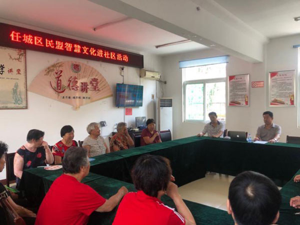 2020年8月28日下午,民盟濟(jì)寧市任城區(qū)二支部智慧文化進(jìn)社區(qū)系列活動(dòng)在濟(jì)陽(yáng)街道南門(mén)社區(qū)(民盟濟(jì)寧市委社區(qū)服務(wù)工作站)舉行。民盟濟(jì)寧市任城區(qū)二支部主委王平、盟員宋志剛和商顯政、南門(mén)社區(qū)工作人員及南門(mén)社區(qū)20多名老年人共同參與活動(dòng)。