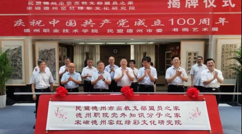 開幕式上,省市領(lǐng)導(dǎo)還為德州職業(yè)技術(shù)學(xué)院黨外知識(shí)分子之家、民盟德州市委高教支部盟員之家、宋磁德州窯紅綠彩文化研究院進(jìn)行揭牌。