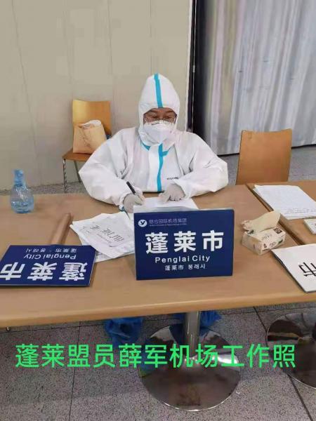 為配合新冠疫情防控工作,自2020年2月至今,蓬萊支部醫(yī)護界盟員始終堅持定期到機場等關建地區(qū)開展防疫工作。近期,在疫情防控形勢嚴峻的關鍵時刻,盟員薛軍、姜立軍再次報名到一線做“防疫戰(zhàn)士”。在機場,薛軍穿著不透氣的防護服,帶著護目鏡、N95口罩,把要護送的客人登記管理,做好解釋工作,然后隨救護車護送到防疫集中服務點,這樣的工作,她每天要跑十幾趟。近期更是7點上班、半夜3點才能回家。為了不耽誤工作,薛軍隨時準備著塑料袋、暈車藥,否則會吐得無法工作,一天下來,全身酸痛。為了更多旅客的生命健康,他們始終堅守,無怨無悔。