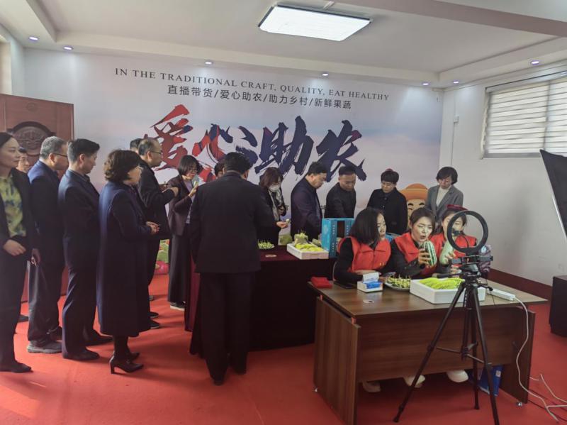 3月22日下午,中共聊城市委統(tǒng)戰(zhàn)部副部長王云、中共煙臺市委統(tǒng)戰(zhàn)部副部長楊麗紅率兩地統(tǒng)戰(zhàn)部門和民主黨派駐會負責人聯(lián)合觀摩莘縣政府與民盟聊城市委會共同打造的同心興聊直播帶貨幫扶項目——魏莊鎮(zhèn)東江店村木蘭小隊愛心助農(nóng)直播間。中共莘縣縣委常委、組織部部長、統(tǒng)戰(zhàn)部部長陸山,分管日常工作的副部長王妹榮,副部長王菡,魏莊鎮(zhèn)政府鎮(zhèn)長沈鑫全程陪同活動。