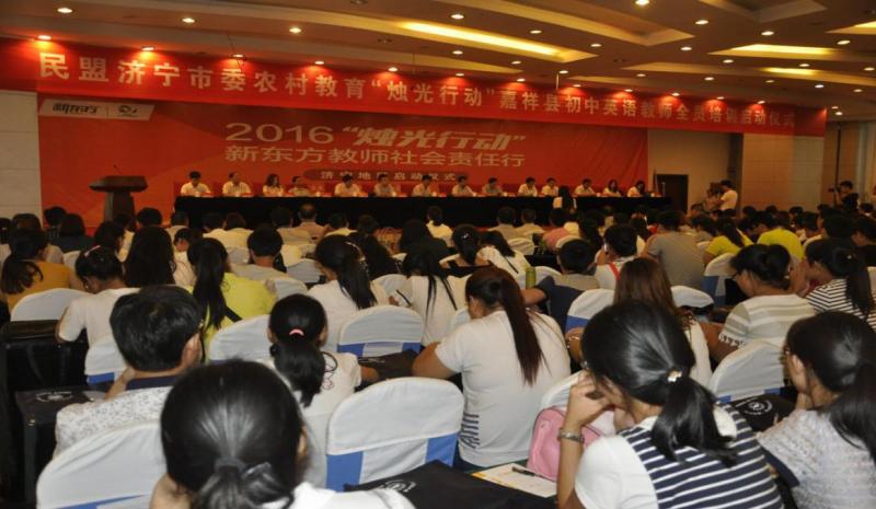 2016年8月22日至26日,民盟濟(jì)寧市委在山東省嘉祥縣舉行“農(nóng)村教育燭光行動(dòng)”,邀請(qǐng)新東方專家老師對(duì)嘉祥縣280多位初中英語教師進(jìn)行了為期五天的培訓(xùn)。