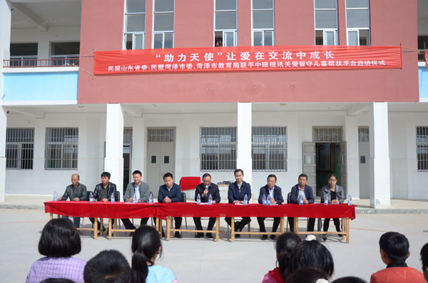 10月17日民盟山東省委、民盟菏澤市委、山東中磁視訊股份有限公司共同開啟教育扶貧“助力天使”活動,捐贈價值三十余萬元親情視頻平臺、短信平臺、電子圖書閱覽設(shè)備,關(guān)心關(guān)愛黃河灘區(qū)留守兒童,實施精準(zhǔn)幫扶。民盟山東省委參政議政部副部長徐濟生,中共菏澤市委統(tǒng)戰(zhàn)部副部長呂文軍,民盟菏澤市委秘書長于新浩出席活動,中共東明縣委統(tǒng)戰(zhàn)部常務(wù)副部長張磊主持活動儀式。東明縣長興集鄉(xiāng)政府有關(guān)領(lǐng)導(dǎo)及楊莊聯(lián)辦小學(xué)全體師生參加活動。