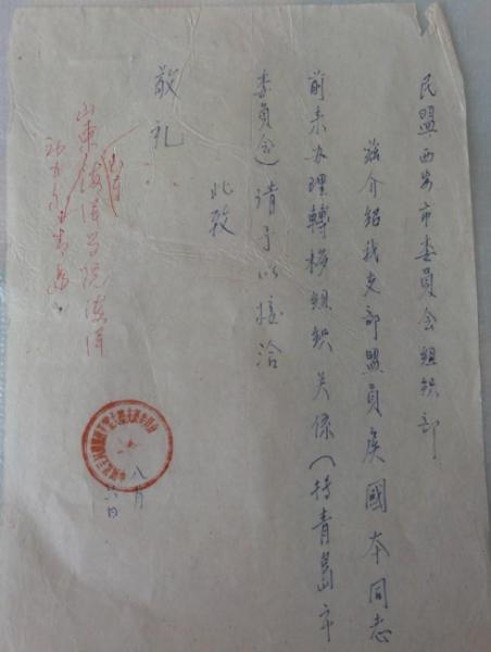 民盟組織關(guān)系轉(zhuǎn)移史料