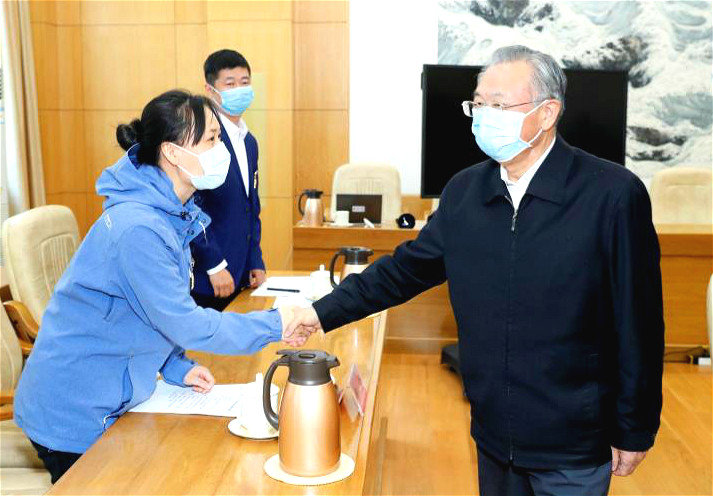 中共山東省委書記劉家義同周蕾握手交談